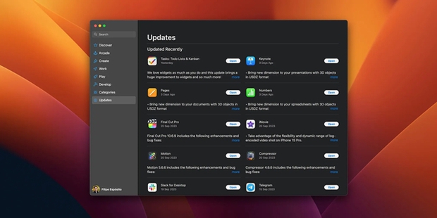 Đó là lý do tại sao việc cập nhật tất cả các ứng dụng đã được cài đặt trên máy Mac của bạn lại quan trọng. Điều này đảm bảo rằng các ứng dụng tương thích với macOS Sonoma, đồng thời tận dụng các tính năng mới của hệ điều hành.