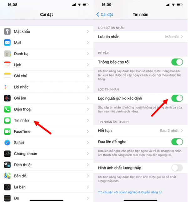 “Sau khi bật tính năng này, iMessage sẽ không hiển thị thông báo và chuyển tin nhắn của những người gửi không nằm trong danh bạ vào một thư mục riêng biệt. Tính năng này cơ bản không thể ngăn chặn việc nhận các tin nhắn này mà chỉ phần nào giúp giảm bớt phiền toái cho người dùng”, Trung tâm VNCERT/CC thông tin thêm.