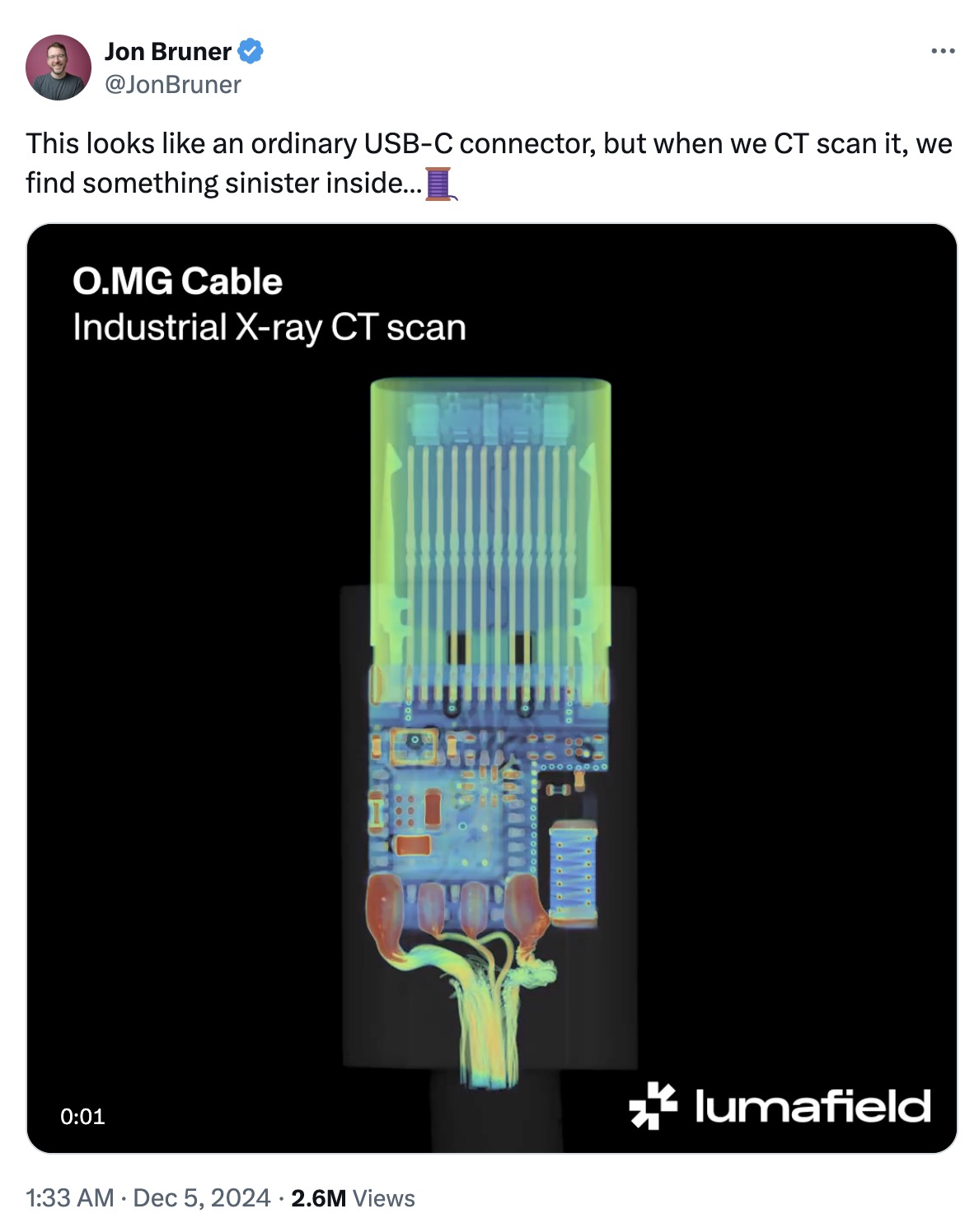 Thông tin gần đây từ Jon Bruner, chuyên gia tại Lumafield – công ty chuyên thực hiện quét CT công nghiệp, đã khiến cộng đồng công nghệ phải lo ngại. Khi phân tích một chiếc cáp USB-C qua quét CT, nhóm nghiên cứu phát hiện rằng bên trong chiếc cáp tưởng chừng vô hại lại chứa một hệ thống can thiệp dữ liệu.