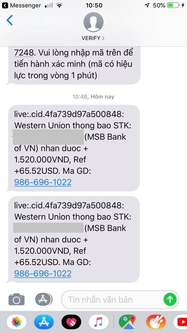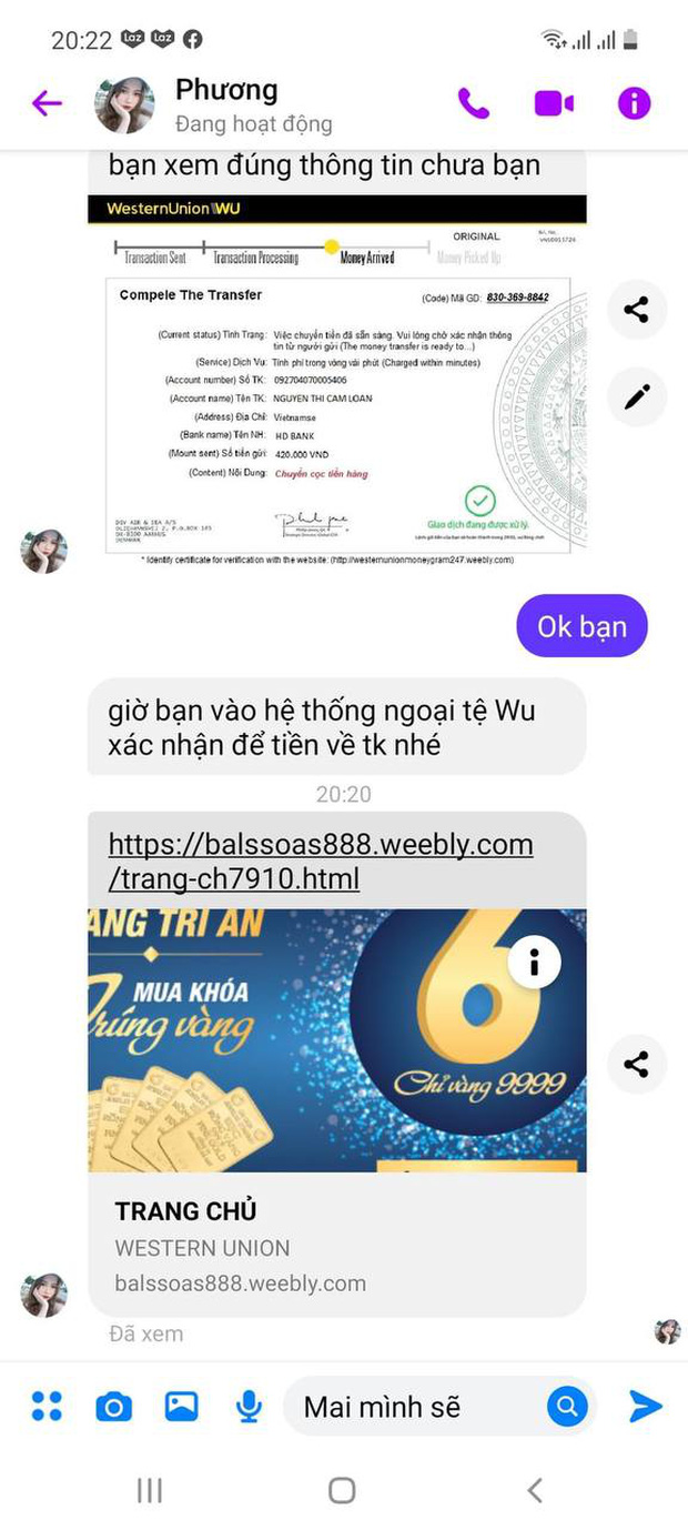 Ngoài việc gửi link trực tiếp trong cuộc trò chuyện thông qua Messenger hoặc Zalo, các đối tượng còn lợi dụng số điện thoại và tài khoản đã có được để gửi tin nhắn giả mạo có đường link truy cập tới ngân hàng quốc tế để đánh lừa.
