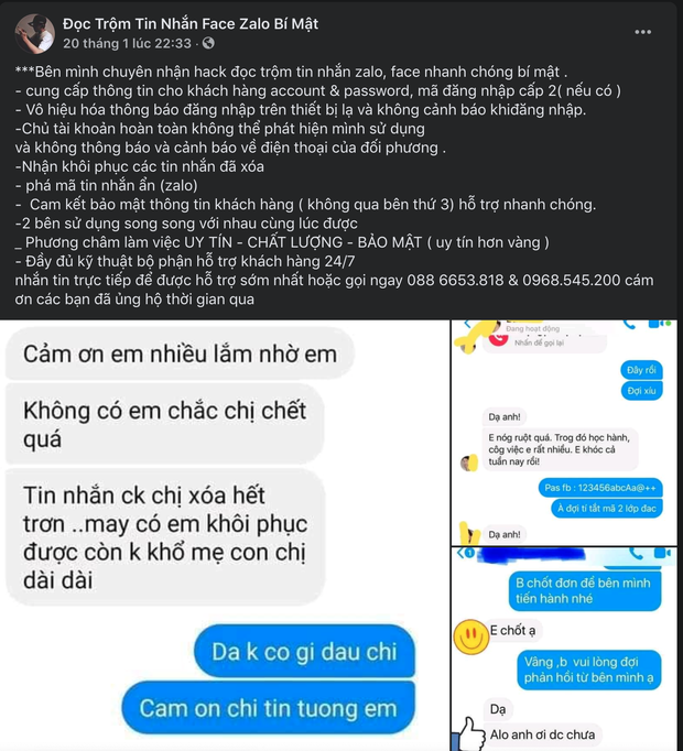 24/01/2021 14:00Cảnh báo dịch vụ hack Facebook, Zalo truy tìm 'trà xanh', xem chừng hành vi vi phạm pháp luật!