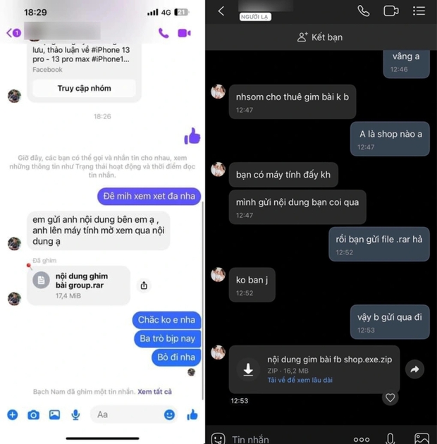 Khi được hỏi về nội dung cần đăng bài quảng cáo, kẻ gian sẽ gửi cho nạn nhân một tệp tin với đuôi ".rar" hoặc ".zip". Trên thực tế, đây là những tệp tin dạng nén có chứa mã độc.