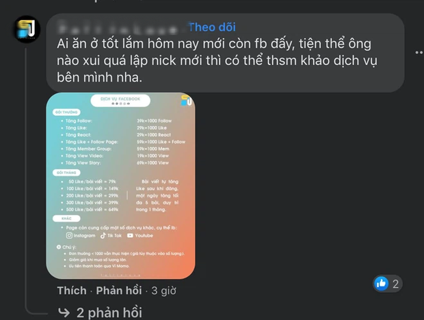 Qua lời anh D.T. P một người có kinh nghiệm trong lĩnh vực dịch vụ MXH nói chung và Facebook nói riêng cho biết: "Chiêu trò lừa đảo từ những người "tự xưng" làm dịch vụ là không hề hiếm, thậm chí còn vô cùng phổ biến mà ai cũng có thể trở thành nạn nhân".