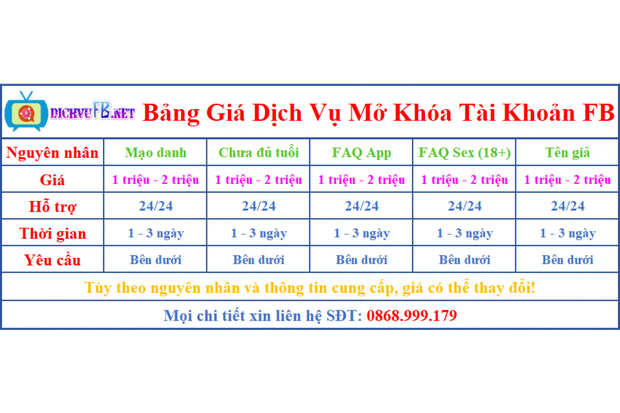Giá của dịch vụ cũng rất khác nhau, thời gian nhanh giá càng cao, thời gian chậm giá thấp hơn, các tài khoản tick xanh cũng có giá khác, dựa vào tình trạng của tài khoản Facebook cũng sẽ có giá khác.
