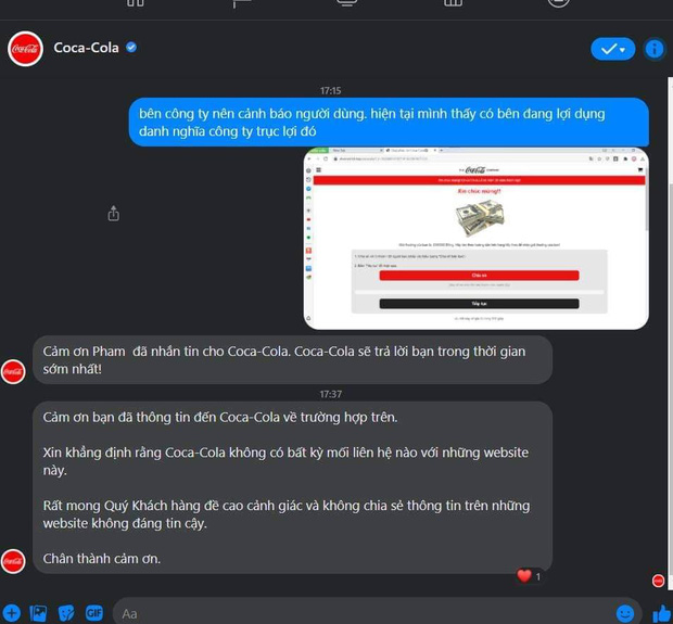 05/06/2021 15:45Cảnh báo: Xuất hiện đường link giả mạo Quỹ phúc lợi Coca-Cola trên Facebook, nhiều người dùng sập bẫy, tài khoản bị 'bốc hơi'