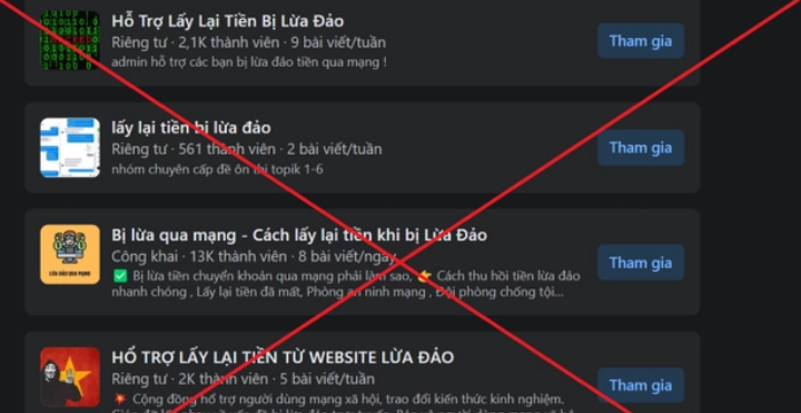 Gần đây, các nhóm trên Facebook hỗ trợ việc thu hồi tiền từ các vụ lừa đảo đã trở nên phổ biến. Chỉ cần tìm kiếm cụm từ "lấy lại tiền lừa đảo" trên Facebook, bạn sẽ thấy nhiều nhóm mở công khai có tên giống nhau và thu hút từ vài nghìn đến hàng chục nghìn thành viên.
