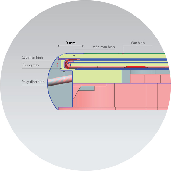 CEO Nguyễn Tử Quảng cũng đăng tải hình ảnh về cấu trúc của chiếc điện thoại được cho là Bphone 5. Có thể thấy độ dày của phần viền là X mm, điều đó có nghĩa là BKAV vẫn chưa tiết lộ chính xác kích thước viền màn hình này là bao nhiêu. Nhưng qua hình vẽ có thể thấy viền màn hình Bphone 5 vẫn chưa được triệt tiêu hoàn toàn mà nó đã cải thiện đáng kể so với thế hệ trước.