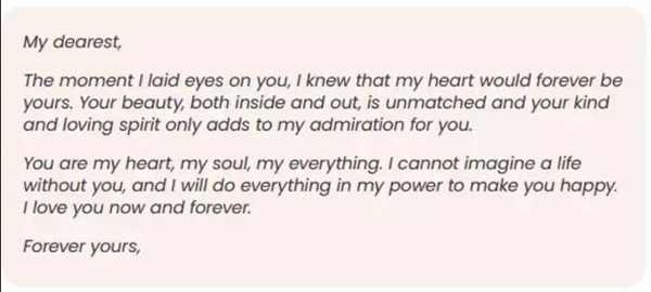 Đây là nội dung lá thư tình mà ChatGPT viết: