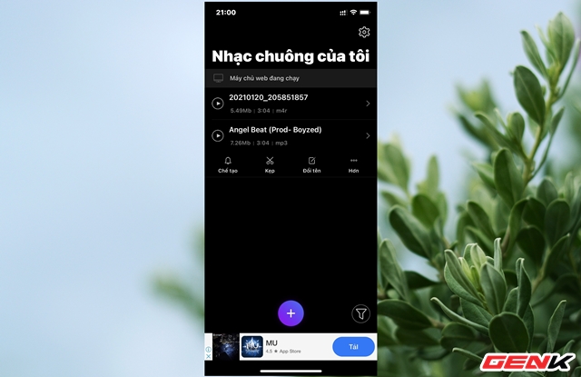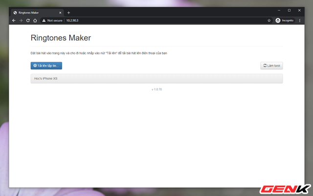 Sau khi hoàn tất việc tải lên, hãy đóng trình duyệt web và chuyển sang giao diện Ringtones Maker ở iPhone. Lúc này bạn sẽ thấy bài hát mình vừa tải đã hiện diện ở giao diện quản lý của ứng dụng.