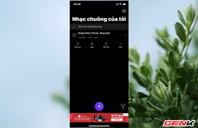 Sau khi cài đặt xong cả 02 ứng dụng, bạn hãy khởi động Ringtones Maker lên, nhấn vào "+" và chọn "Tải lên từ PC".