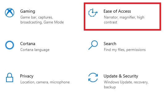 Bước 2: Sau đó, chọn mục Ease of Access.