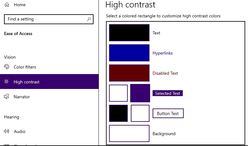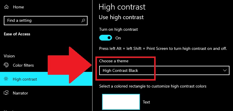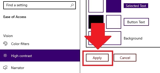 Lưu ý: khi bật High Contrast, hình nền của bạn sẽ bị đổi theo giao diện của Windows, bạn cần phải chọn lại hình nền mà bạn muốn để áp dụng cho giao diện mới.