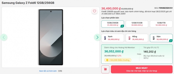 Galaxy Z Fold6 - 256GB: 36.490.000 đồng