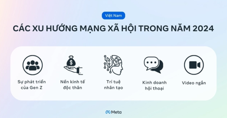 Theo ông Khôi Lê, Giám đốc Quốc gia thị trường Việt Nam nền tảng Meta (chủ quản của mạng xã hội Facebook, Instagram), năm 2024 có 5 xu hướng mạng xã hội nổi bật trên các nền tảng của Meta mà doanh nghiệp không thể bỏ qua.