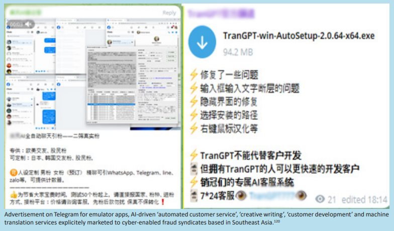 Chuyên gia an ninh mạng cũng cho biết, báo cáo có hình ảnh các trình giả lập dựa trên phần mềm AI được thiết kế để tự động hóa các tương tác với nạn nhân trên các nền tảng như Facebook, WhatsApp, Zalo và Telegram, theo các kịch bản lừa đảo đã được lập trình sẵn.