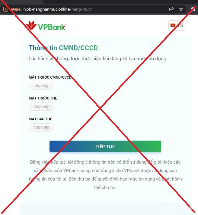 Hiện một loạt website giả mạo liên quan đến chiến dịch này đã được đưa vào danh sách đen của dự án Chống lừa đảo. Một số trang web nổi bật có thể kể đến như card-vpb[.]com, vpbcards[.]online, card-vpb[.]online, vpbs-cards[.]com, vpb-nanghanmuc[.]online, vpb-nanghanmuc[.]com, hanmuc-vp[.]com, hanmuc-vp[.]online, vp-nanghanmuc[.]com, hanmuc-vpb[.]online,...