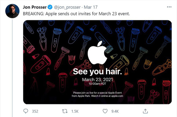 Đầu tháng 3, nhiều người trong cuộc đã rò rỉ tin rằng Apple sẽ tổ chức một buổi giới thiệu sản phẩm mới vào ngày 23/3, tại đó Táo khuyết sẽ trình làng iPad Pro mới, AirTag và AirPods 3.