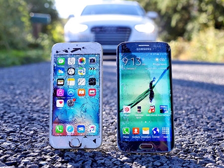 Mới đây, kênh Everything Apple Pro đã sử dụng mũi dao rạch, thả rơi xuống nền bê tông và dùng bánh xe hơi cán lên để thử độ bền của hai chiếc smartphone iPhone 6s và Samsung Galaxy S6 Edge.