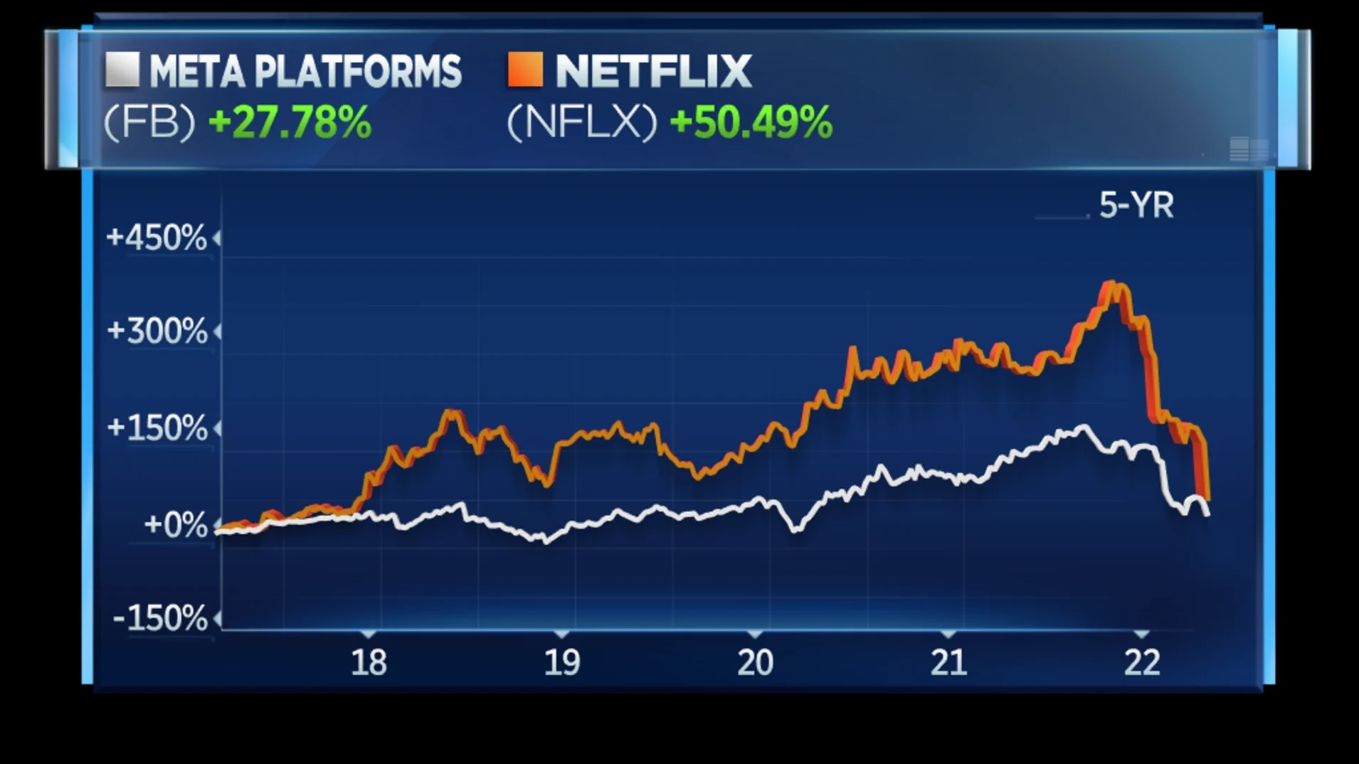 Những nhà đầu tư đã đi theo Netflix và Facebook một thập kỷ trước vẫn đang có lãi, song các cổ đông mới chịu thiệt hại nặng nề. Theo CNBC, biến động giá cổ phiếu Netflix trong 10 năm là 1.321,77%, 5 năm là 50,85%, 3 năm là -42,88% và 1 năm là 57,64%. Tỉ lệ với cổ phiếu Facebook lần lượt là 381,56%, 28,14%, 1,47% và -37,91%.