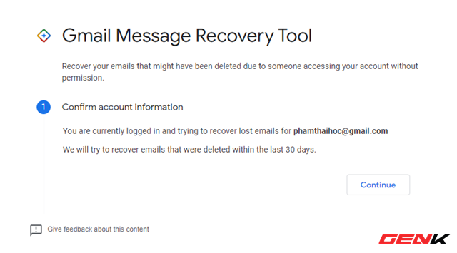 Để liên hệ Google nhờ giúp đỡ, bạn hãy truy cập vào trang Gmail Message Recovery Tool, sau đó tiến hành xác nhận tài khoản cần Google khôi phục lại email đã xóa trước đó 30 ngày.
