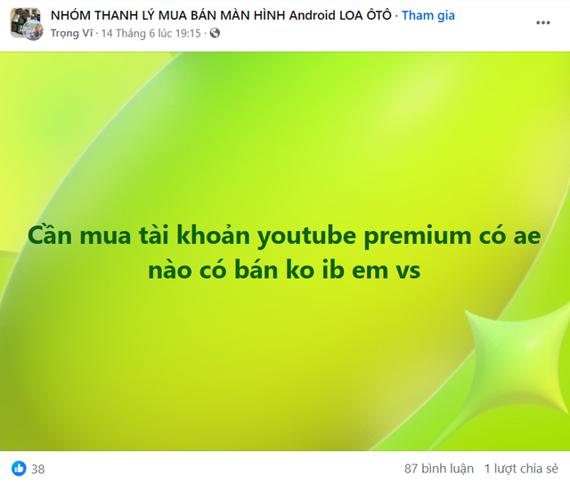 Nhờ vậy, người dùng khi có nhu cầu chỉ cần đăng bài viết cần mua tài khoản YouTube Premium hay Netflix, 1 phút sau sẽ nhận được hàng chục bình luận và tin nhắn báo giá, kèm với lời hứa cam kết bảo hành, uy tín chất lượng.