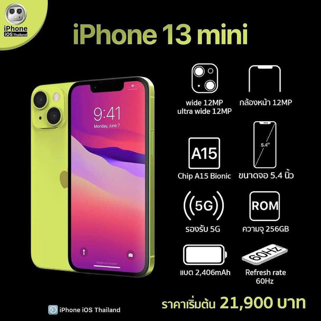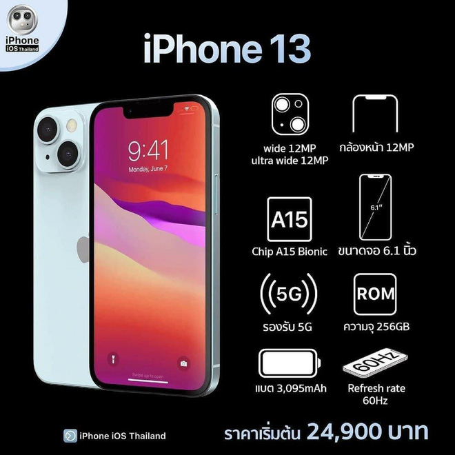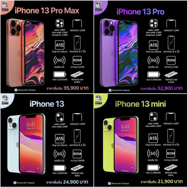 Giá bán theo như những gì iPhone iOS Thailand tiết lộ: iPhone 13 mini sẽ có khởi điểm từ 21.900 Bath Thái (khoảng 15,1 triệu đồng), iPhone 13 từ 24.900 Bath Thái (khoảng 17,1 triệu đồng), iPhone 13 Pro từ 32.900 Bath Thái (khoảng 22,7 triệu đồng) và cuối cùng là iPhone 13 Pro Max từ 35.900 Bath Thái (khoảng 24,7 triệu đồng). Tất nhiên, giá bán trên vẫn đang là dự kiến. Không biết khi về Việt Nam, iPhone 13 sẽ được các tay buôn thổi giá lên như thế nào nhỉ?