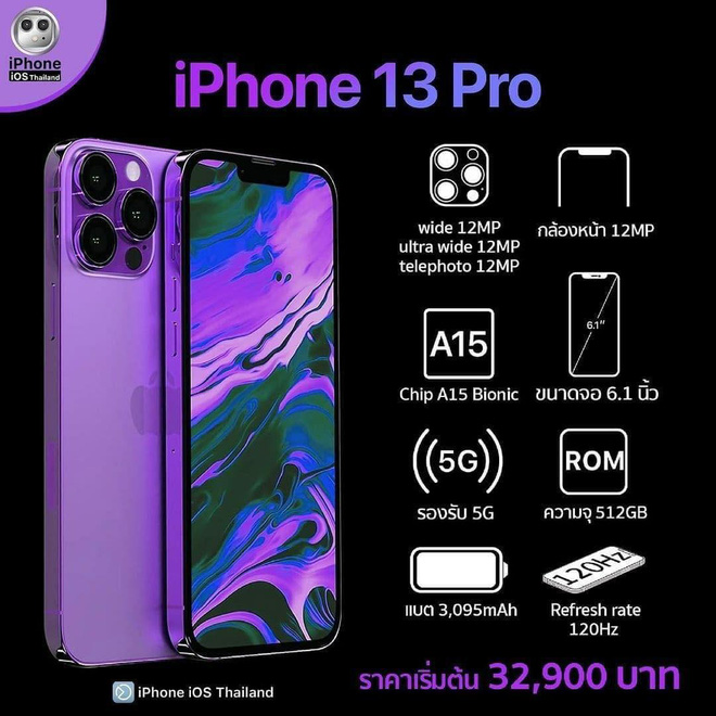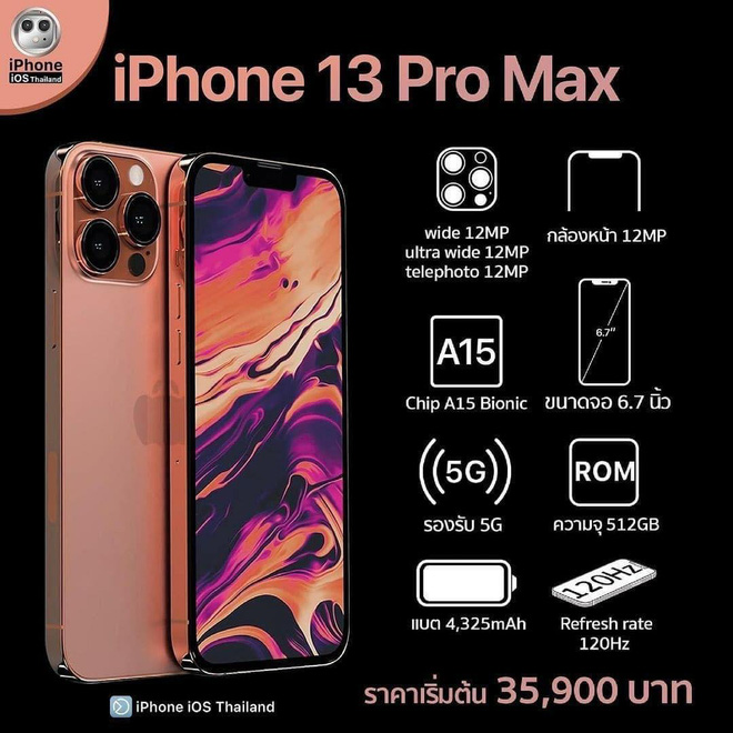 Có thể thấy, iPhone 13 Pro vẫn sở hữu thiết kế tương tự như iPhone 12 Pro. Vẫn là khung viền phẳng với các góc bo cong, hệ thống ba camera cùng đèn Flash LED phía sau. Các thông số iPhone 13 không khác mấy iPhone 12, nhưng nghe đồn là "tai thỏ" có nhỏ đi. Còn phải chờ Apple ra mắt chính thức mới biết được. Dung lượng pin sẽ lớn hơn và tần số quét của màn hình iPhone 13 sẽ đạt 120Hz. Tin đồn iPhone 13 1TB đã xuất hiện từ khoảng tháng 10 năm ngoái. Tuy nhiên, iPhone IOS Thailand đã bác bỏ trong bản thông số lần nay.
