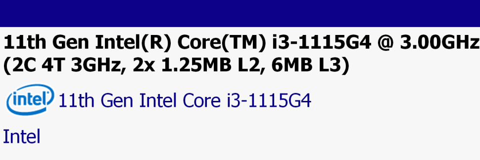 Cụ thể thì con này là Intel Core i3-1115G4 nằm trong phân khúc bình dân thuộc thế hệ thứ 11 “Tiger Lake”. Nó có 2 nhân 4 luồng như những con chip mobile Core i3 khác.