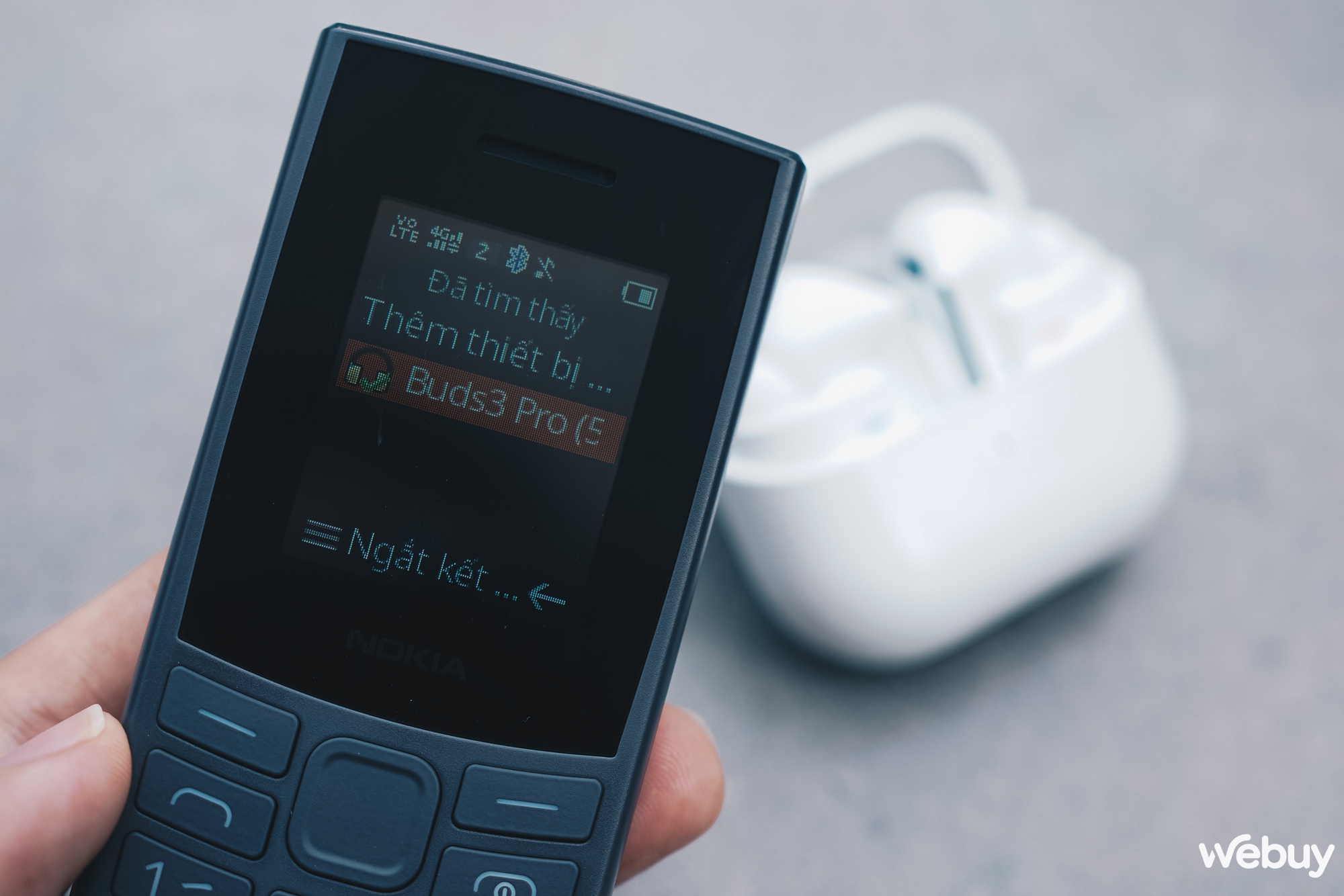 Bên cạnh jack cắm tai nghe 3.5mm, một trang bị khá bất ngờ của Nokia 105 4G Pro là Bluetooth, cho phép kết nối với tai nghe không dây. Thử nghiệm thực tế cho thấy Nokia 105 4G Pro có thể kết nối với tai nghe TWS như Samsung Galaxy Buds3 Pro mà không gặp trở ngại nào.