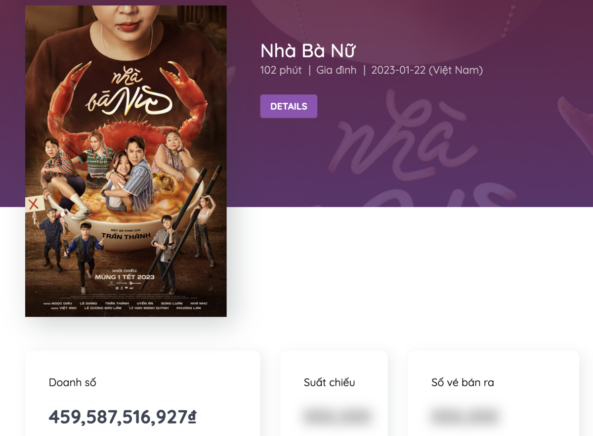 PV VietNamNet cũng tiến hành kiểm tra thử doanh thu hai bộ phim trước đây của Trấn Thành làm đạo diễn là "Nhà bà Nữ" và "Bố già". Kết quả cho thấy, phim "Nhà bà Nữ", theo BOVN, có doanh số 460 tỷ đồng, trong khi đó phía nhà sản xuất công bố là 475 tỷ đồng; phim "Bố già" trên hệ thống có doanh thu 395 tỷ đồng, tuy nhiên phía nhà sản xuất phim công bố là 427 tỷ đồng.