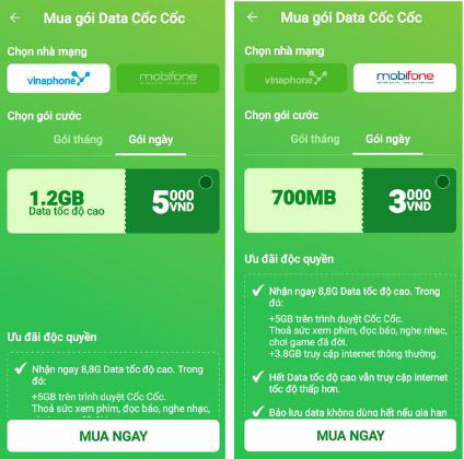 Giờ đây, những trải nghiệm "đặc quyền" của người dùng Cốc Cốc không chỉ dừng lại ở những tiện ích bên trong ứng dụng, mà còn được mở rộng hơn với gói cước "Data xanh lá".