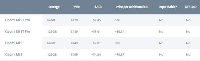 Tuy nhiên, điểm mạnh của Xiaomi là để nâng cấp lên model 128GB, người dùng không cần phải "rút hầu bao" thêm quá nhiều, nhất là với dòng Mi 9T Pro: chỉ với 22 USD, bạn đã có thể tăng gấp đôi dung lượng lưu trữ của máy mình.