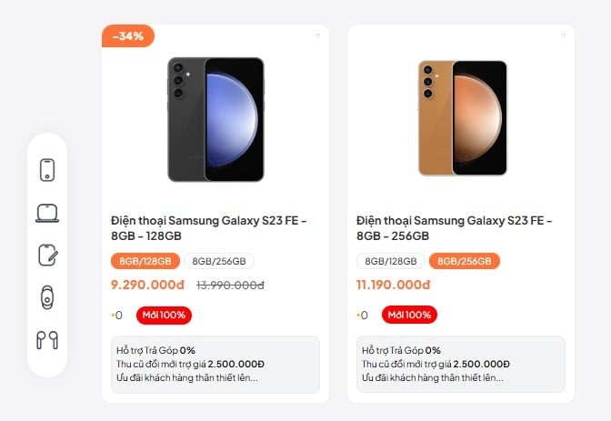Tại thời điểm thấng 12, giá Galaxy S23 FE hiện chỉ hơn 9 triệu đồng cho bản 128GB và hơn 11 triệu cho bản 256GB.