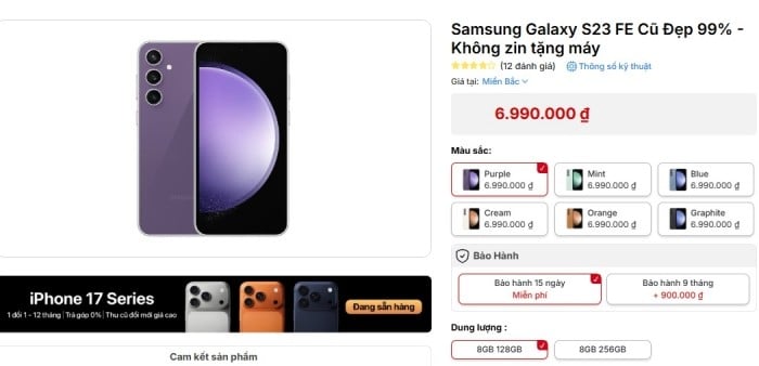 Tại thời điểm đầu năm 2026, Galaxy S23 FE không sẵn hàng mới nhưng hàng cũ lại khá nhiều với mức giá chỉ hơn 6 triệu đồng - ngang với smartphone giá rẻ. Trong khi đó, hiệu năng của chiếc Galaxy S23 FE vẫn cực kỳ mạnh, dễ dàng đe dọa đến iPhone 13, iPhone 14 và cả iPhone 17 về camera.