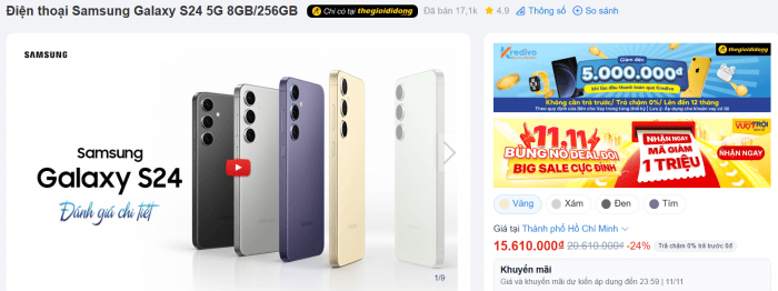 Cuối tháng 12, khách Việt có thể dễ dàng sở hữu chiếc Galaxy S24 với giá từ 15.610.000 đồng cho cấu hình RAM 8GB và bộ nhớ 256GB. Với giá bán này, Galaxy S24 được coi là “vua Android” tầm trung khi xét về trang bị.
