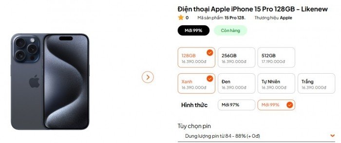 - iPhone 15 Pro Like New - 128GB: 16.390.000 đồng