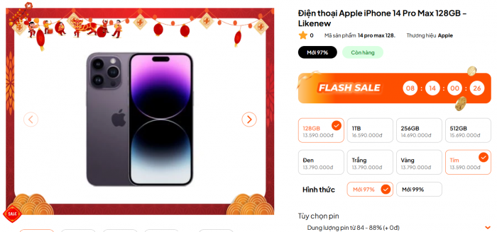 - iPhone 14 Pro Max - 128GB: 13.590.000 đồng