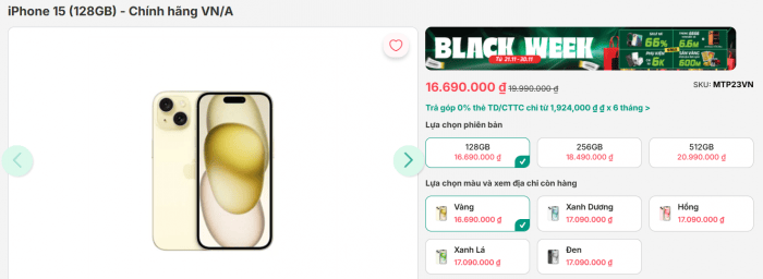 - iPhone 15 - 128GB: 16.690.000 đồng