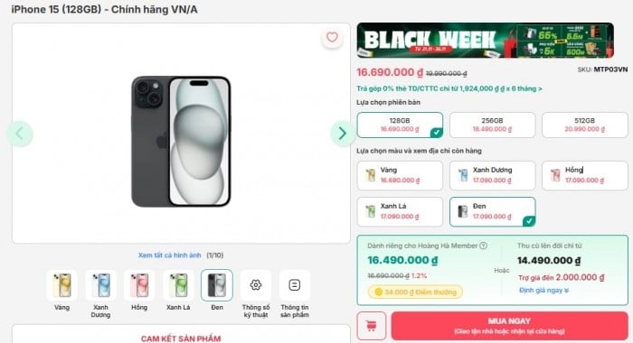 Cuối tháng 12, iPhone 15 tiếp tục giảm cực sâu và chốt ở mức hơn 16 triệu đồng. Dù đây là mức tăng nhẹ so với trước nhưng với một chiếc iPhone ra mắt chỉ hơn 2 năm, các phần cứng còn rất xịn thì iPhone 15 đang được xem là cực rẻ và dễ mua.