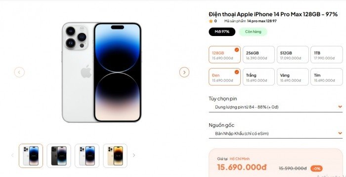 Tại thời điểm cận Tết, iPhone 14 Pro Max cũ đẹp bản 128GB cũ đẹp có giá chỉ từ 15.69 triệu đồng, bản 256GB từ 16.39 triệu đồng còn bản 512GB từ 17.09 triệu đồng. Mức giá này nhìn chung dễ tiếp cận hơn tới một nửa so với iPhone 17 Pro Max.