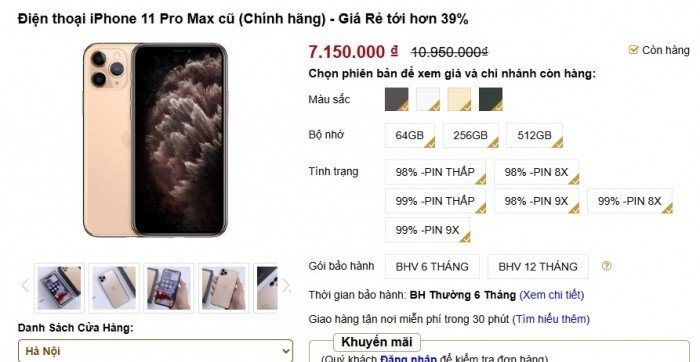 Cuối tháng 3/2026, iPhone 11 Pro Max là chiếc iPhone Pro Max rẻ nhất Việt Nam cung cấp tính năng 3 mắt này với mức giá rẻ. Cụ thể, bản 64GB cũ đẹp như mới chỉ hơn 7 triệu đồng. Tuy nhiên khách Việt nên mua bản 256GB hoặc 512GB với mức giá từ 8-9 triệu đồng nếu muốn khai thác hết khả năng của cụm camera 3 mắt này.