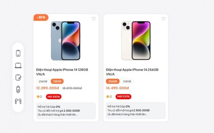 - iPhone 14 - 128GB: 12.09 triệu;