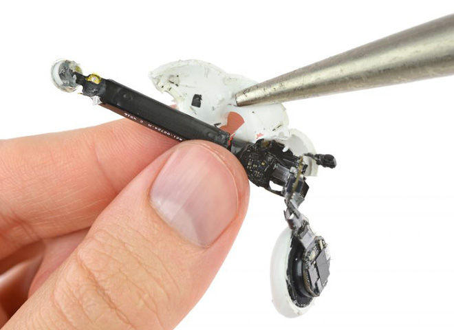 Thiết kế đặt pin trong cuống tai, vỏ là khối nhựa khiến AirPods trở nên không thể sửa chữa được.
