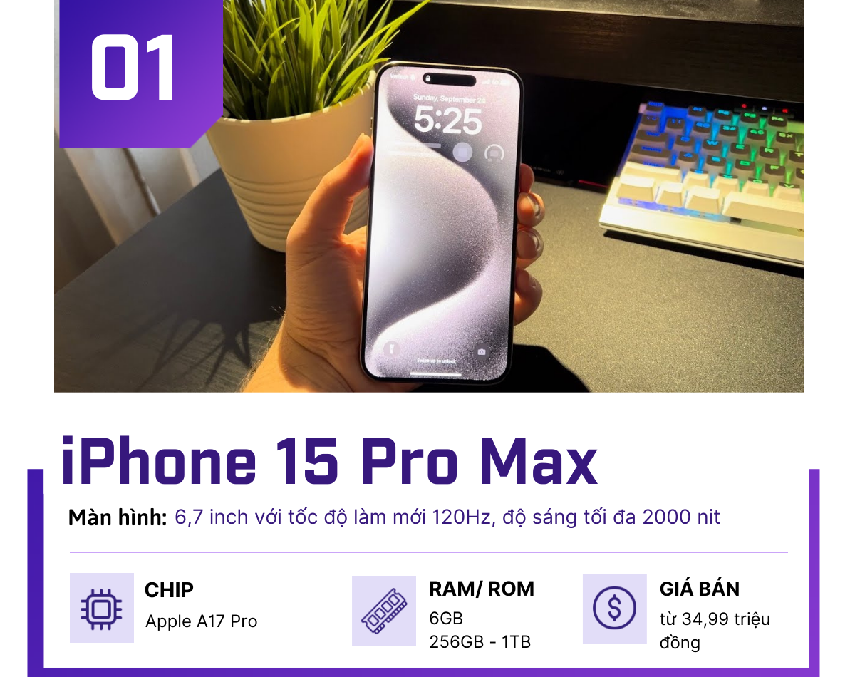 Rõ ràng, iPhone 15 Pro Max đang là lựa chọn tuyệt vời nhất của iFan. Điện thoại có màn hình 6,7 inch với độ sáng ấn tượng - 2000 nit cùng tốc độ làm mới thích ứng 1- 120Hz. Khi kết hợp cùng khu vực Dynamic Island, "siêu phẩm" này dễ dàng làm thoả mãn mọi fan hâm mộ công nghệ.