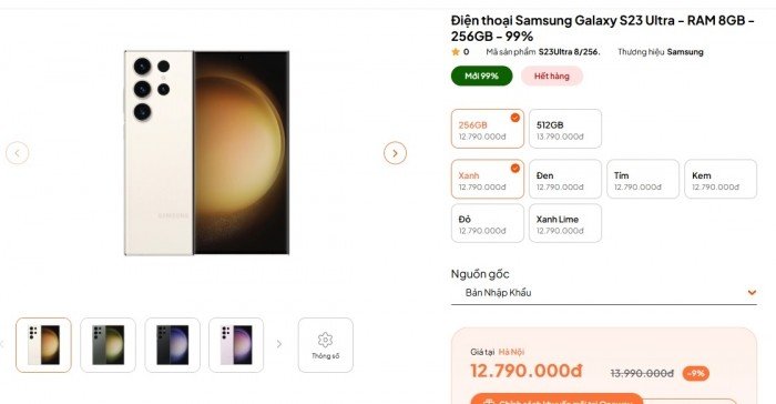 Tại thời điểm cận Tết, Galaxy S23 Ultra chủ yếu có hàng dưới dạng máy cũ và giá từ 12.79 triệu đồng cho bản 256GB. Nó rẻ ngang với iPhone 13.