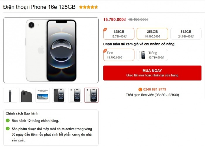- iPhone 16e - 128GB: 15.79 triệu đồng.