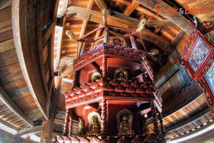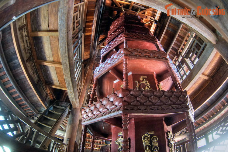 Tầng 1 gồm 5 gian, có các vì kèo kết cấu kiểu giá chiêng đơn giản. Tầng 2 thu lại còn 3 gian, với 4 hàng chân cột. Tầng ba thu lại còn 1 gian. Dựa vào kết cấu kiến trúc và hoa văn trang trí, có thể xác định công trình được dựng vào thế kỷ 18 và tu sửa vào thế kỷ 19.