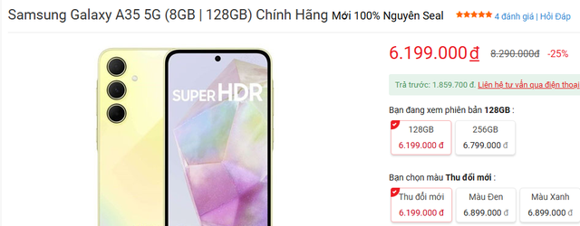 Mẫu smartphone Samsung Galaxy A35 5G được các chuyên gia đánh giá rất có tiềm năng so với các đối thủ khác cùng tầm giá trong năm 2024. Theo đó, mẫu smartphone sở hữu màn lớn, có 5G với sức mạnh hàng đầu phân khúc tầm trung nhưng giá bán lại siêu rẻ. Hiện tại, khách Việt có thể sở hữu Galaxy A35 5G với giá đập hộp hơn 6 triệu đồng.