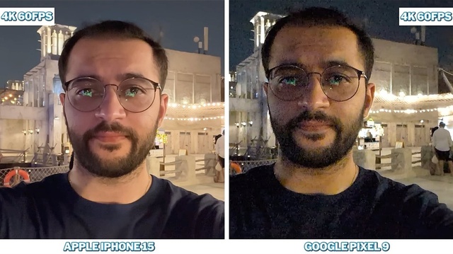So sánh với iPhone 15, Pixel 9 tiếp tục thể hiện sự yếu kém trong chế độ chụp chân dung và gặp vấn đề với độ ồn trong video chụp trong điều kiện ánh sáng yếu.