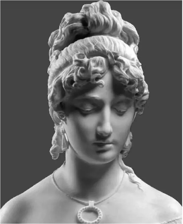 Bức tượng “Cô dâu sợ những bài hát” là một trong những tác phẩm điêu khắc nổi tiếng nhất của Gaetano Motelli. Các chuyên gia đã lựa chọn bức tượng này để yêu cầu AI khôi phục gương mặt của cô dâu được tạc tượng. Và AI quả thực đã không là chúng ta thất vọng, bức chân dung của cô gái vô cùng sống động. Nàng không giống đang sợ hãi mà dường như đang chìm đắm vào những giai điệu. Dù đang nhắm mắt nhưng chúng ta vẫn thấy được nàng có nét đẹp vô cùng ngây thơ và trong trắng như một thiên thần.